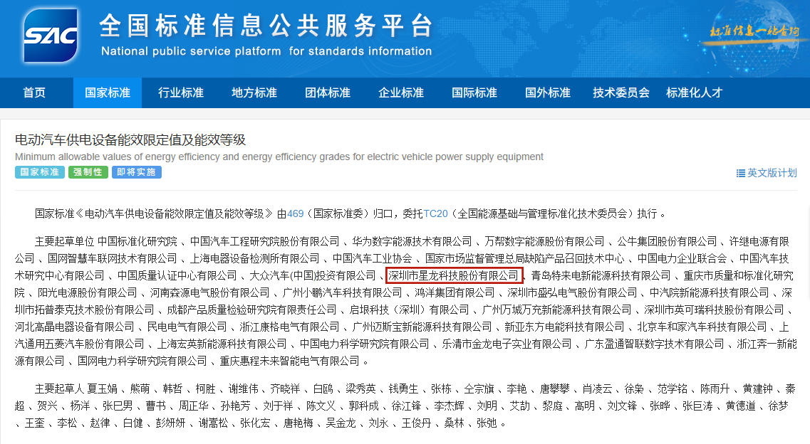 星龙科技参与起草!国内首个电动汽车充电设备能效强制国标正式发布